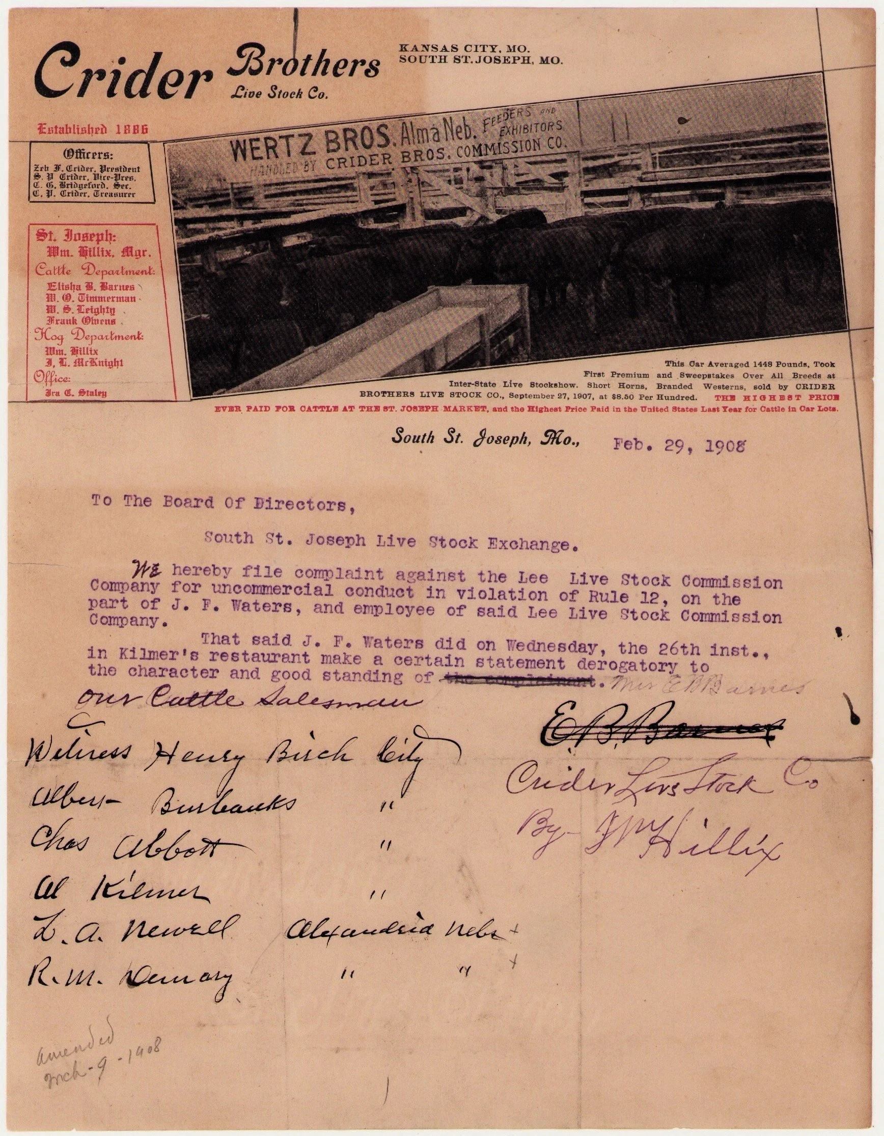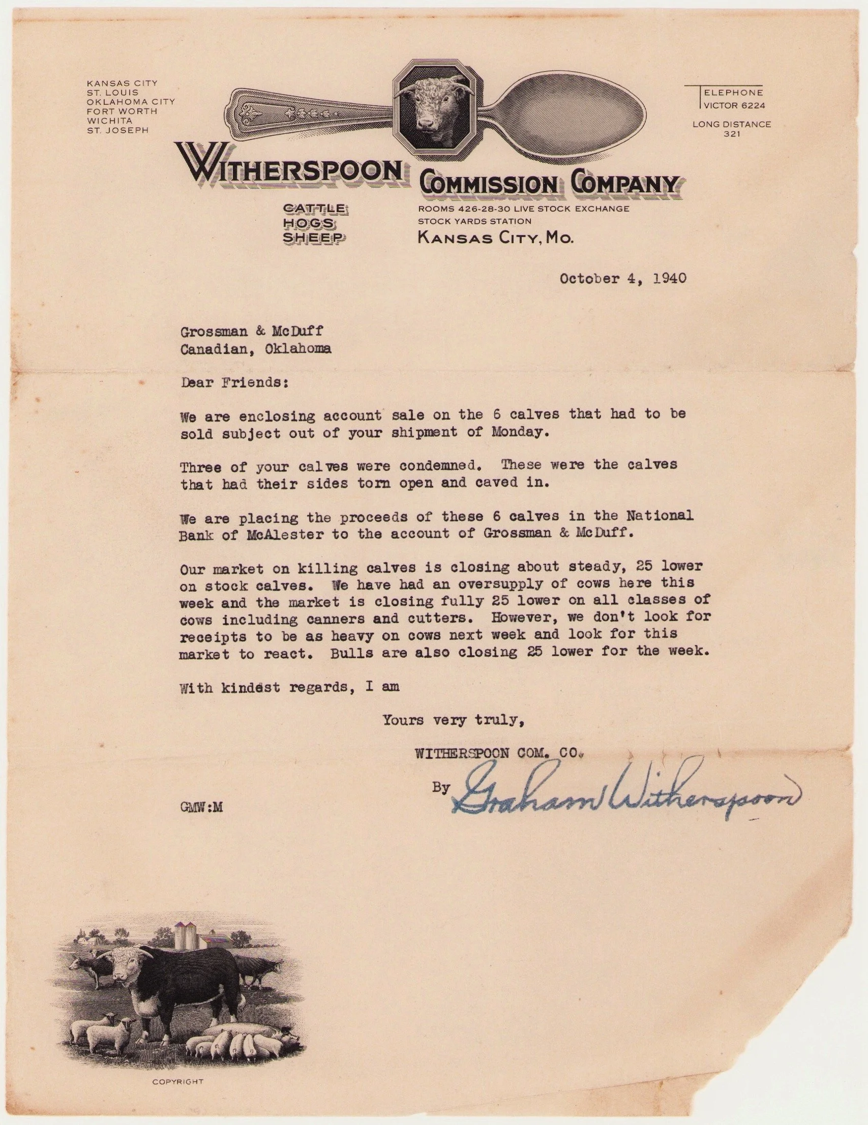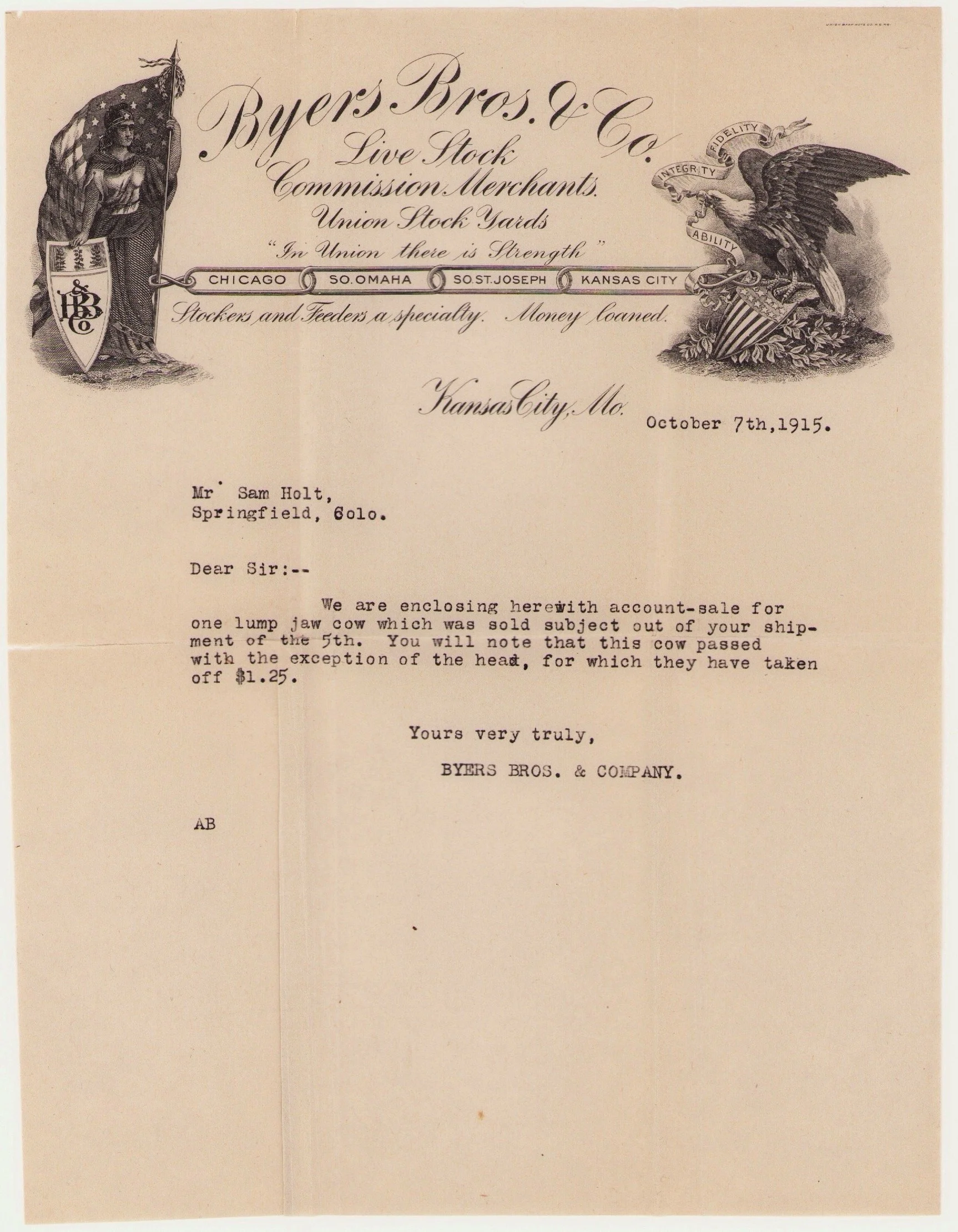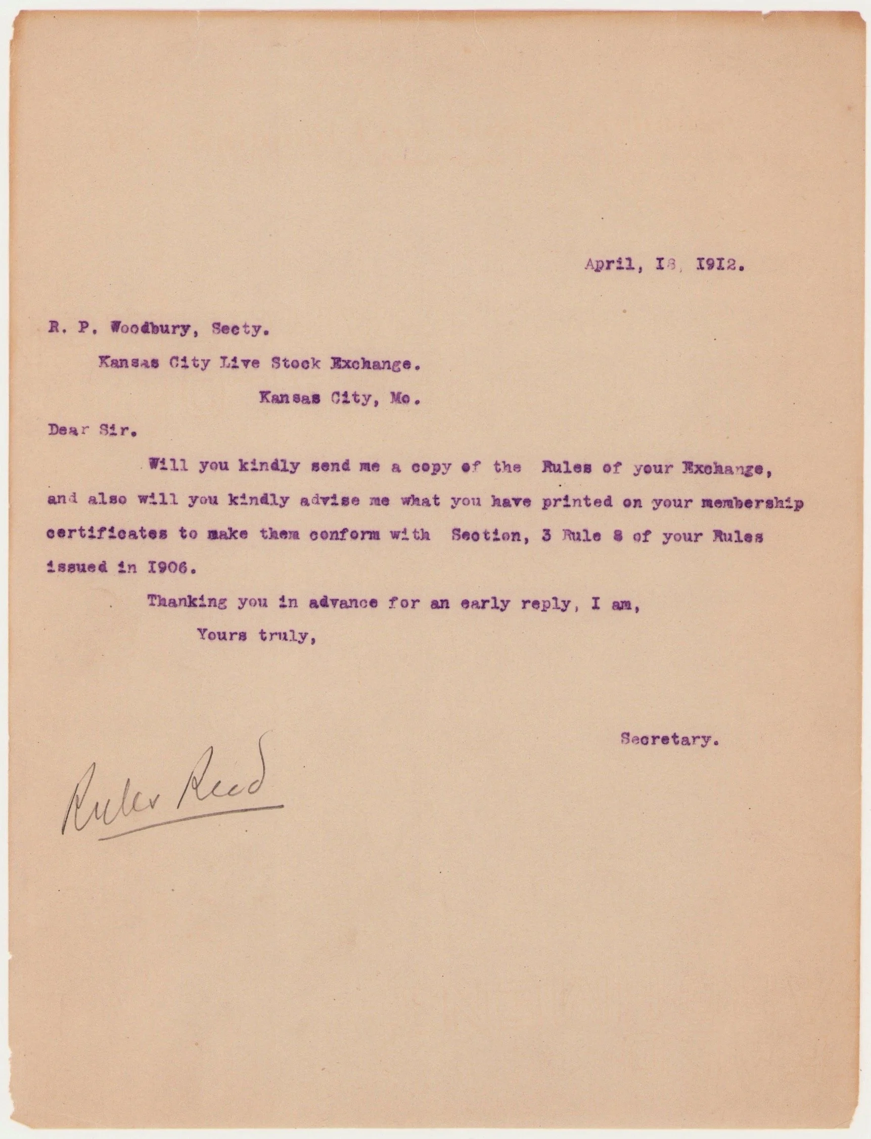 Explore letters and documents from the early 1900s and beyond. These letters, sent to and from people who worked in the Livestock Exchange Building and Kansas City Stockyards, offer a rare look into the history of what was once the engine of Kansas City's biggest economic engine.